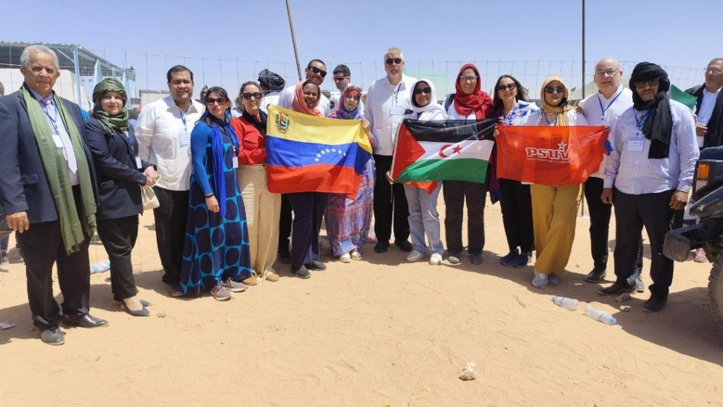 inicio sobre nosotros comunicados noticias Opinión y Análisis galería inicio sobre nosotros comunicados noticias Opinión y Análisis galería Sexta Brigada de Solidaridad junto al pueblo de Saharaui en el 50. º aniversario de la proclamación de la RASD Tinduf, 8 de abril de 2026.– La Sexta Brigada de Solidaridad con el Pueblo Saharaui, integrada por organizaciones y movimientos sociales de Venezuela, participa en los actos conmemorativos del 50.º aniversario de la proclamación de la República Árabe Saharaui Democrática (RASD), en el marco de las celebraciones que se desarrollan en los campamentos de refugiados saharauis. La brigada forma parte de la delegación venezolana presente en esta significativa fecha, junto al viceministro de Relaciones Exteriores para África, Yuri Pimentel, y la Embajada de Venezuela ante la RASD. El Instituto Simón Bolívar para la Paz y la Solidaridad entre los Pueblos integra esta misión, representado por su vicepresidenta, Lídice Altuve, y por Keban Frías. Sus integrantes califican la experiencia como “extraordinaria” y expresan su profundo honor por acompañar al pueblo saharaui en un momento de especial relevancia histórica.“Es un honor compartir con el pueblo saharaui. Admiramos profundamente su capacidad de lucha, dignidad y resistencia”, afirmó la vicepresidenta Lídice Altuve, sintetizando el sentir de la delegación. Durante su estancia, los miembros de la sexta brigada han tenido la oportunidad de conocer de primera mano la realidad de los campamentos de refugiados y ratifican, la firme determinación de un pueblo que, tras cinco décadas, continúa defendiendo su derecho a la autodeterminación, ampliamente reconocido en el ámbito internacional. Las actividades conmemorativas, que reúnen delegaciones internacionales y se desarrollan entre el 8 y el 9 de abril, reafirman la vigencia de las instituciones saharauis y la continuidad de su lucha por la soberanía y la independencia. La Sexta Brigada de Solidaridad ratifica su compromiso de seguir acompañando al pueblo saharaui en su camino hacia la paz, la libertad y el retorno a su tierra ancestral.