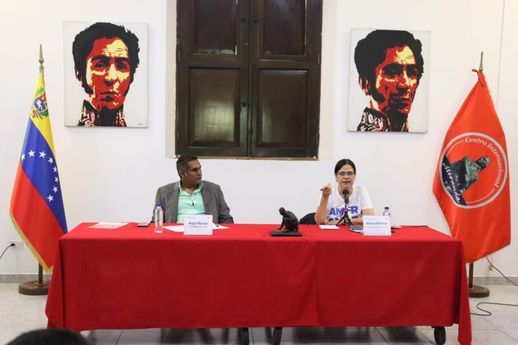inicio sobre nosotros comunicados noticias Opinión y Análisis galería inicio sobre nosotros comunicados noticias Opinión y Análisis galería La Diplomacia Bolivariana de Paz: Un puente para la unión de los pueblos Caracas, 29 de abril de 2026.- Este miércoles, la Casa de la Historia Insurgente fue sede de la conferencia «La Diplomacia Bolivariana de Paz», que contó con la presencia del pueblo caraqueño, que asistió para escuchar la conferencia de Blanca Eekhout, diputada a la Asamblea Nacional y presidenta del Instituto Simón Bolívar para la Paz y la Solidaridad entre los Pueblos. Este evento es organizado por el Centro Internacional Miranda (CIM), a través de su cátedra «Democracia Participativa y Protagónica» y moderado por el Lic. Angel Marrero, investigador de la casa formativa. La exposición de la diputada Eekhout recorrió importantes eventos históricos de la Revolución Bolivariana, recalcó la agresión que Estados Unidos ha estado cometiendo contra el país, a través de sabotaje, intentos de golpe de estado, medidas económicas coercitivas, violencia en las comunidades incluyendo la quema de ciudadanos como el caso de Orlando Figuera, para hacer sufrir al ciudadano común, culpar al gobierno de turno por las dificultades y generar una guerra civil. La diputada también resaltó que el secuestro del presidente y su esposa se produjeron en un marco donde Venezuela estaba jugando un papel de vanguardia en la conciencia, no sólo del pueblo venezolano, al promover el poder popular y las comunas; sino también de Latinoamérica y el mundo al organizar múltiples encuentros creadores de conciencia, de solidaridad y de organización como los encuentros antifascistas, por una Humana Humanidad, la Asamblea Internacional de los Pueblos, entre otros. Por eso, enfatizó, secuestraron a Nicolás y a Cilia. El presidente Nicolás Maduro creó el Instituto Simón Bolivar para la Paz y la Solidaridad entre los Pueblos (ISB) como instrumento para extender puentes entre los pueblos para construir la paz, y la solidaridad mutua. En este sentido, Eekhout, enfatizó que numerosas delegaciones internacionales nos han visitado y han conocido las experiencias de las comunas y las estructuras del poder popular para construir agendas comunes entre los pueblos; también indicó que se creó el Consejo Articulador de Movimientos Sociales y Comunas del ISB que se constituye en el elemento articulador entre las comunidades venezolanas y los pueblos del mundo. Es la visión del mundo de Bolívar convertido en praxis, agregó, gracias a Chávez, hoy recogemos una vía para la construcción de un nuevo enfoque del proceso revolucionario, donde cada cada comunidad aún en el último rincón del país, debe entender e interpretar su realidad con una visión geopolítica, verse como parte del mundo. Una visión que hoy está plasmada en la Séptima Transformación de las 7T, concluyó.
