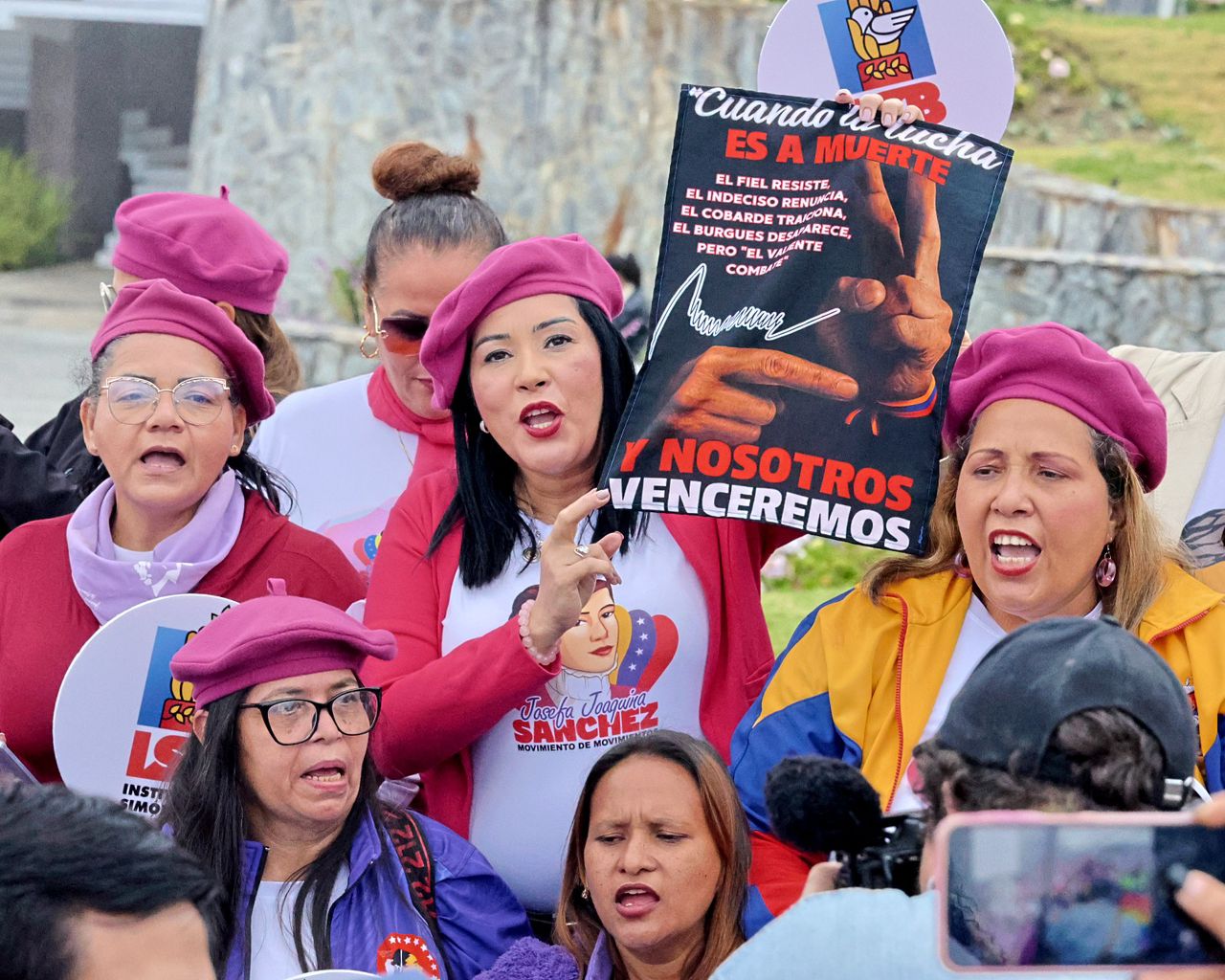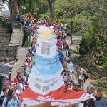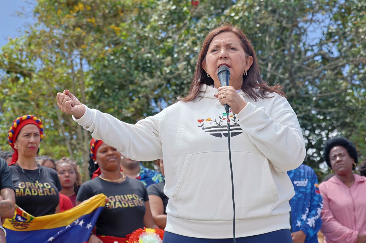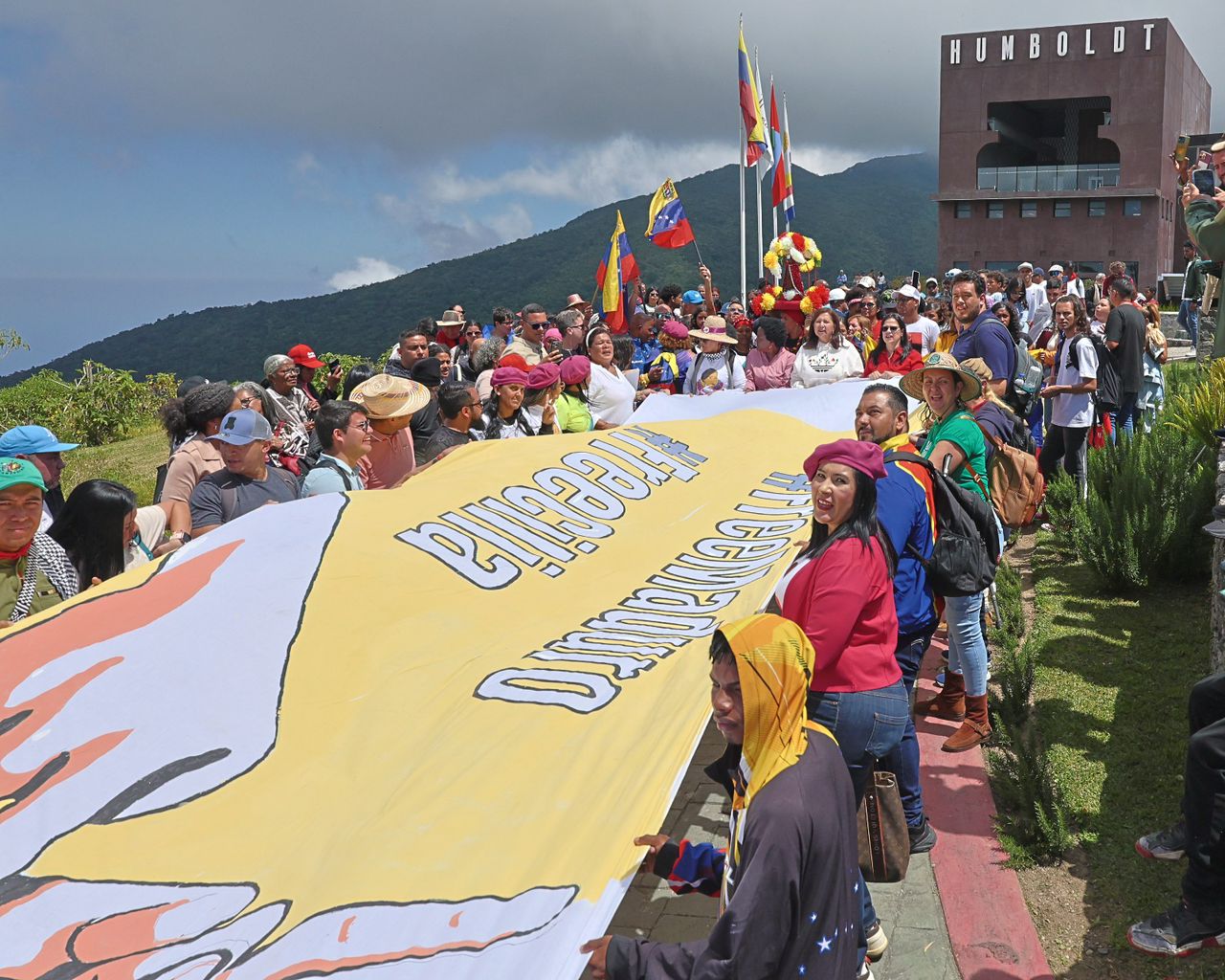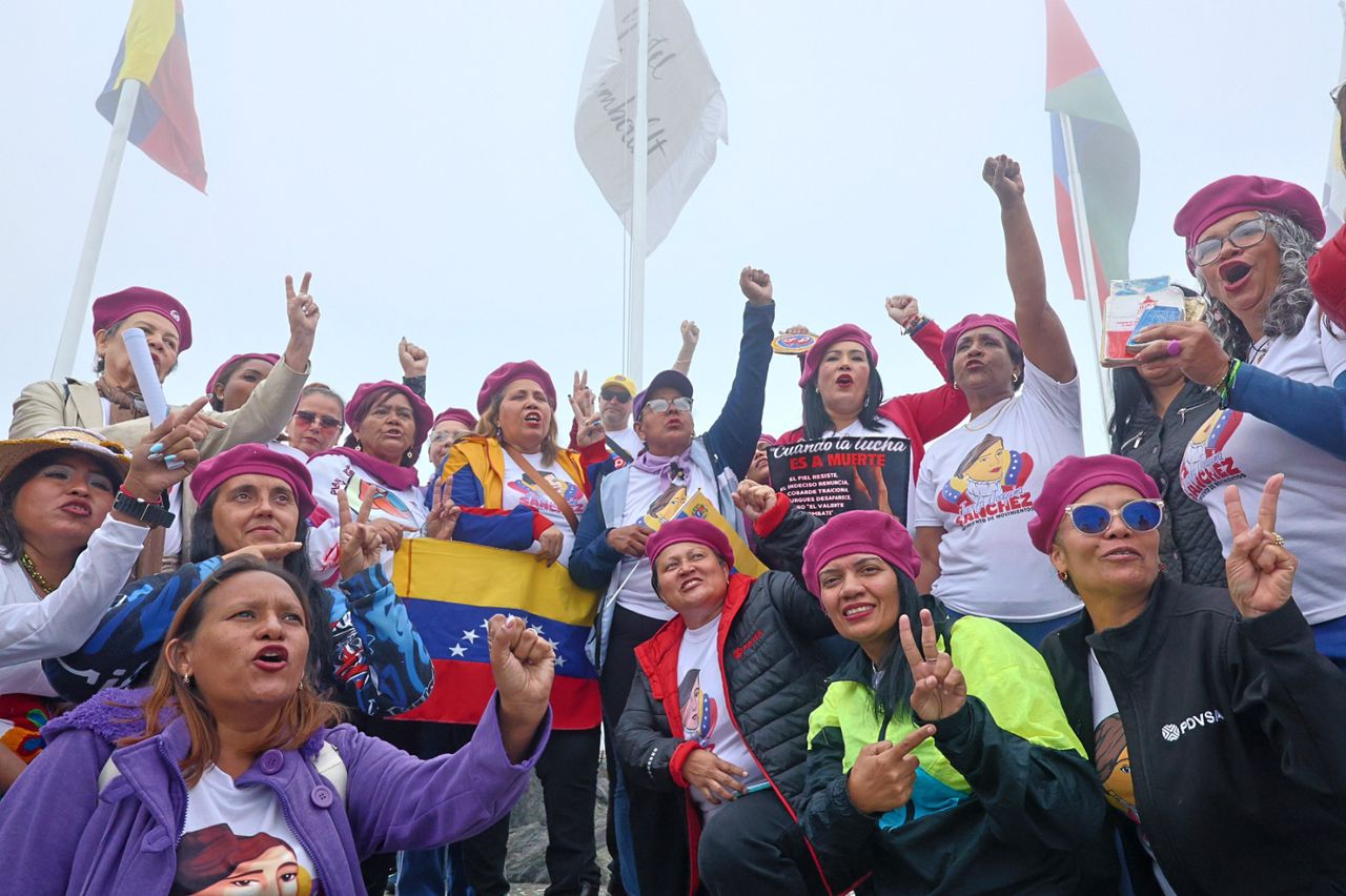El momento más emblemático de la jornada fue el repique colectivo de tambores y la agitación de una pancarta desplegada por todos los asistentes. Al unísono, la montaña retumbó con la consigna: “Repiquen, repiquen, repiquen los tambores, liberen a Maduro y también a Cilia Flores”.